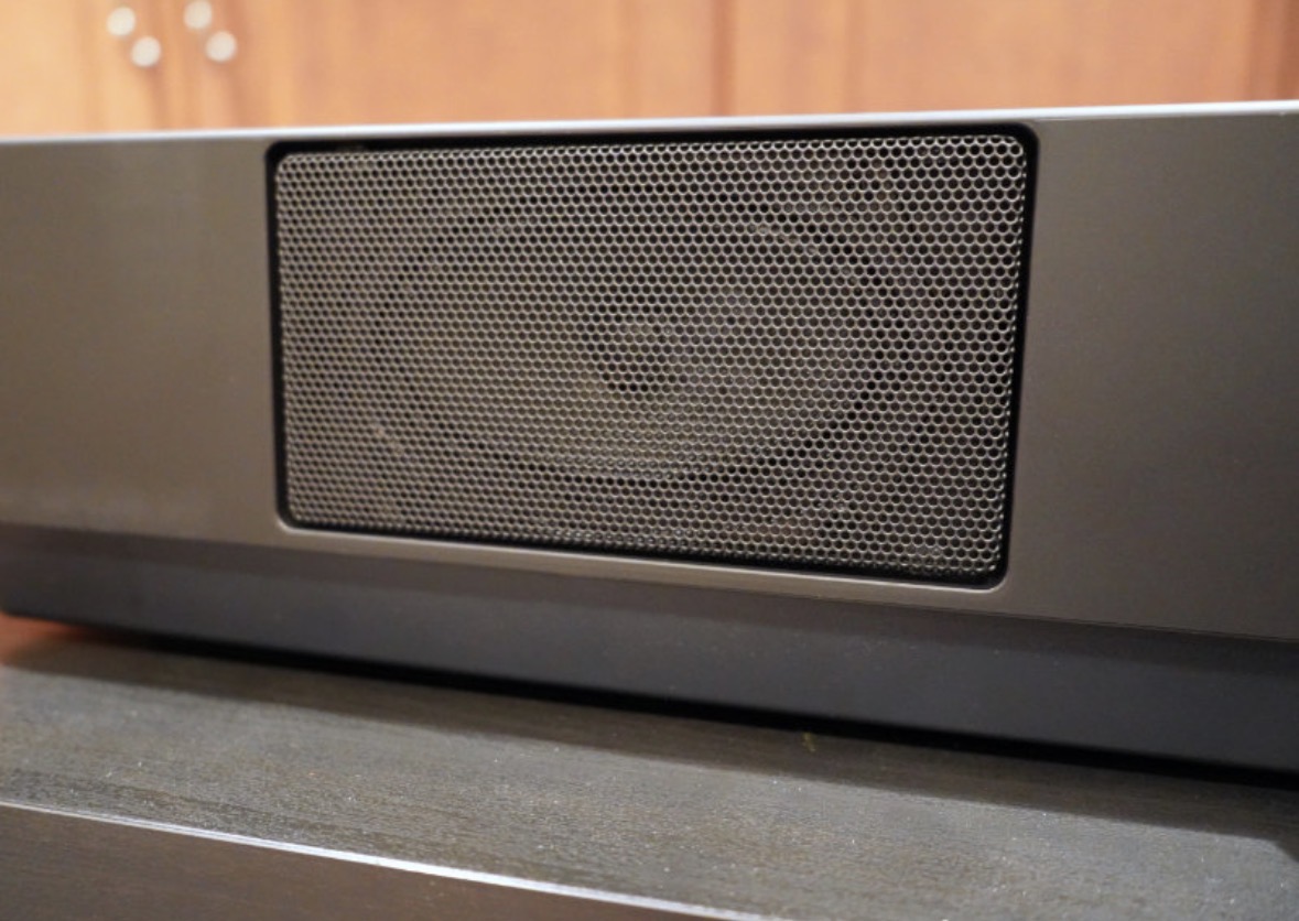 스피커는 7W x 2, 스피커 유닛은 Oval 12cm x 8cm와 5cm가 좌우에 배치되고, Wall EQ, IAC, Stereophonic Optimizer 같은 보정 기능도 들어감.