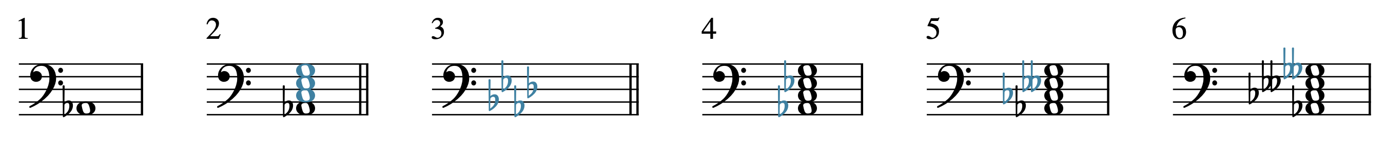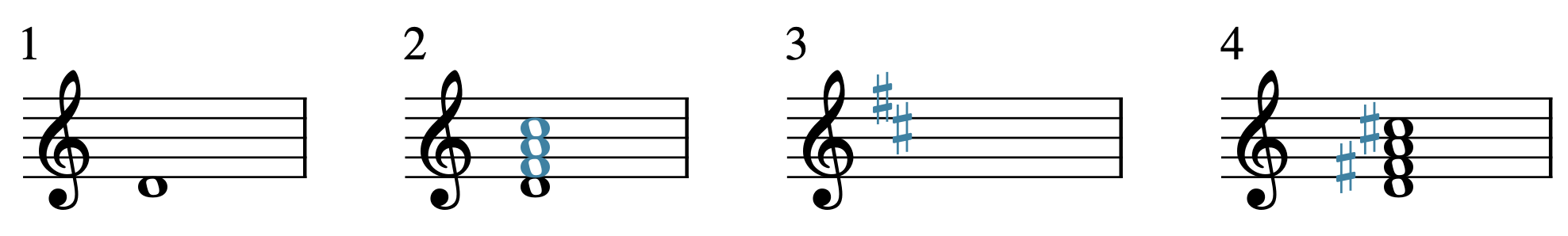 Section titled “7화음 구성하기 Spelling Seventh Chords”코드 기호를 보고 7화음을 적는 순서는 3화음과 비슷함.